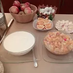 Frukosten hade olika slags alternativ, inklusive rostat bröd, flingor, frukt och ägg